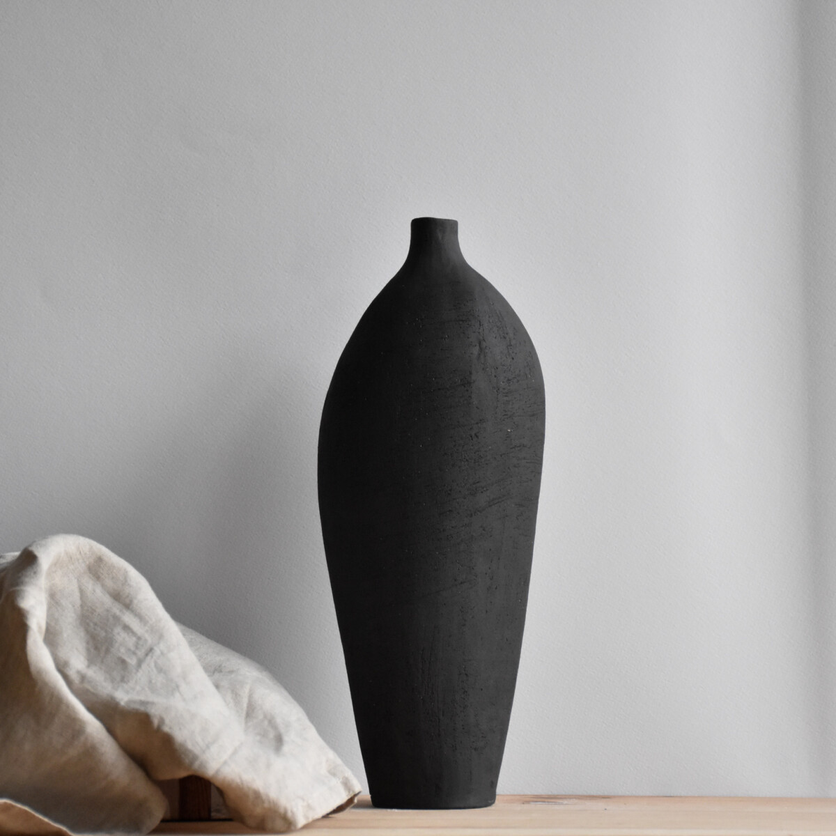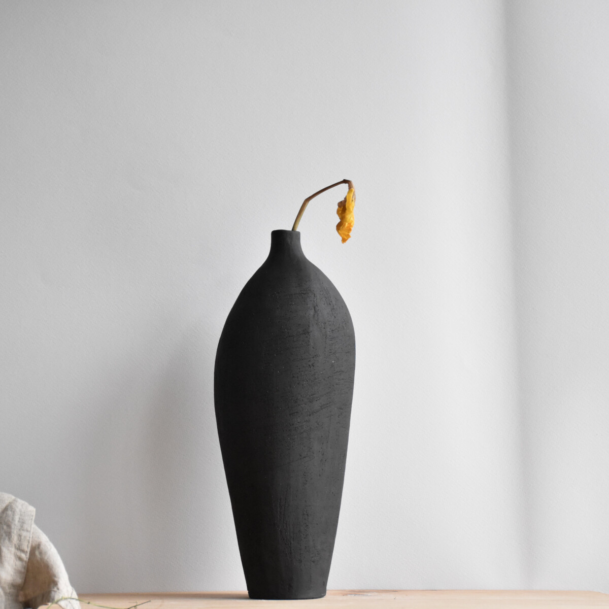 “V-Vase V2″ is a sculptural vase which made with hand building technique with black stoneware clay. It has a matte texture and unglazed surface. There are three different models of V-Vase Collection, which works well alone or together as a family.